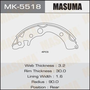 Колодки тормозные MASUMA MK5518 HONDA CIVIC 1995-1997, HONDA CIVIC FERIO 1995-1997, HONDA CR-X DELSПроизводитель: MASUMA